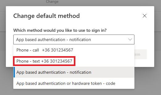 2. The default secondary authentication method is the one what was added at the first time. To modify the setting click the Change link.