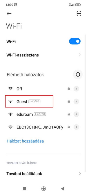 - Válassza ki a Wi-Fi hálózatok közül a Guest kapcsolatot.