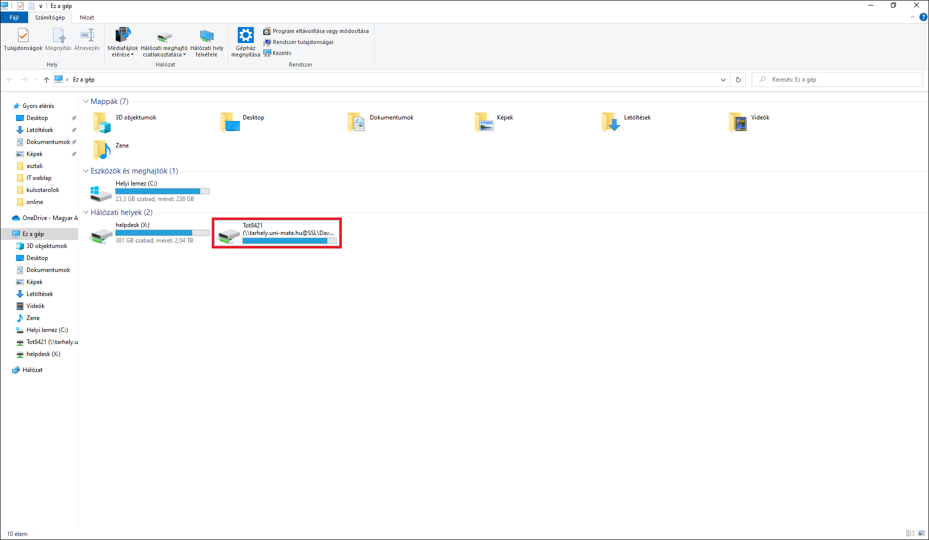 Hálózati meghajtó felcsatolásának előnye, hogy a tárhelyen lévő fájljainkat közvetlenül a windowsból is el tudjuk érni.