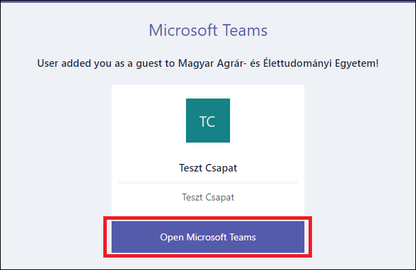 2. A levélben katttintson az Open Microsoft Teams vagy A Microsoft Teams megnyitása gombra.