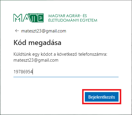 3. A böngészőprogramban megnyíló új lapon kattintson a Kódot kérek gombra. Ne tévessze, meg, hogy az üzenetben az szerepel, hogy a „A(z) … telefonszámra küldött kóddal jelentkezhet be.” üzenet jelenik meg. A kód az ön e-mail címére fog megérkezni.