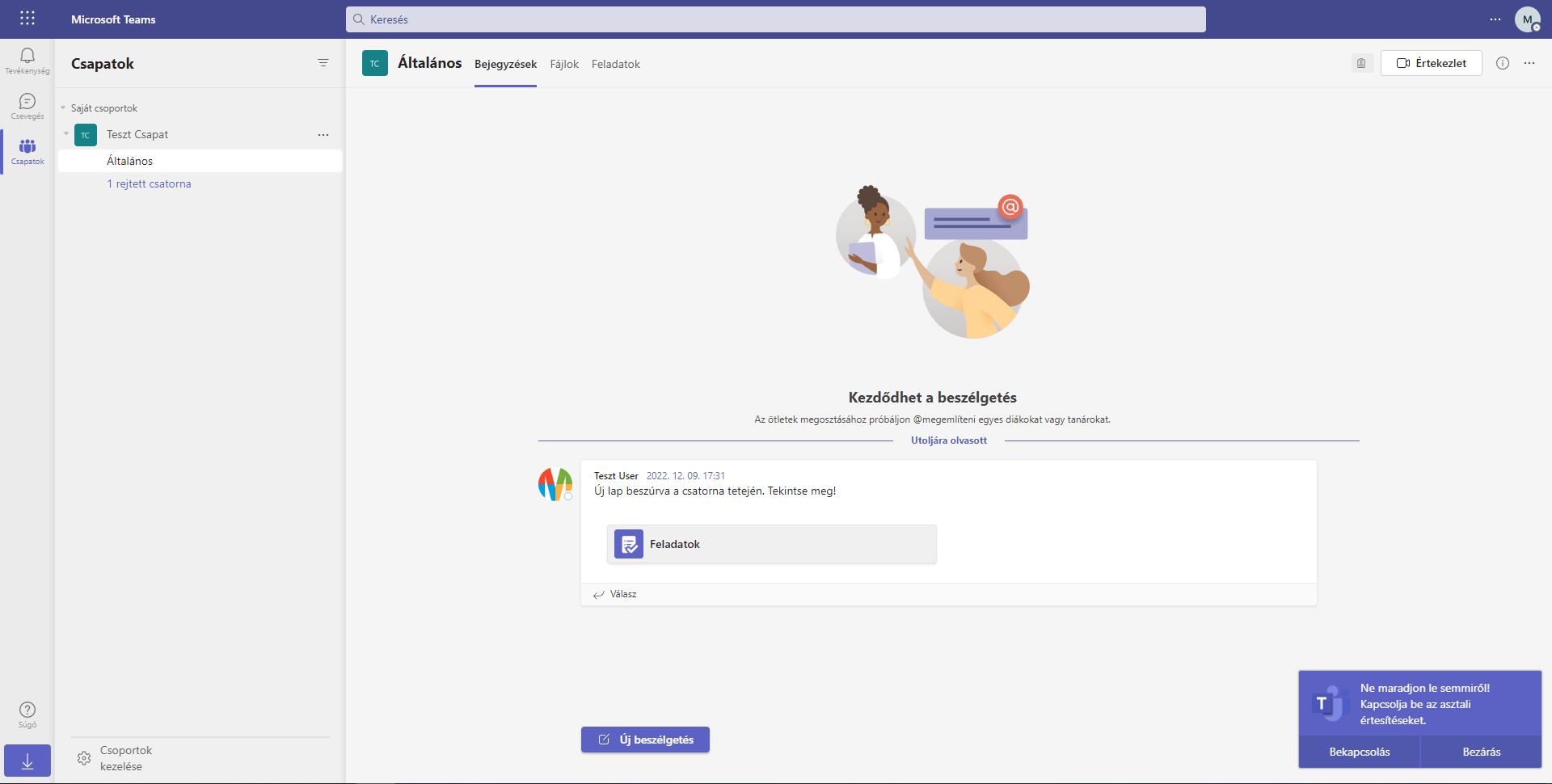15. Ha első alkalommal indítja el a Teams alkalmazást, akkor egy rövid képes ismertetőt láthat. Ennek a diáit a Tovább gombra kattintva tudja léptetni. A bemutató után elérhető a Teams csapat melyhez meghívót kapta.