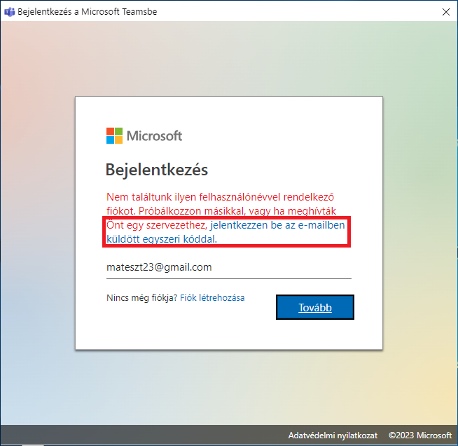 10. Ha a rendszer nem ismeri fel a fiókját, kattintson a szövegben lévő jelentkezzen be az e-mailben küldött egyszeri kóddal hivatkozásra.