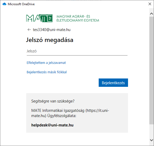 OneDrive fiók beállítása - MATE Informatikai Igazgatóság