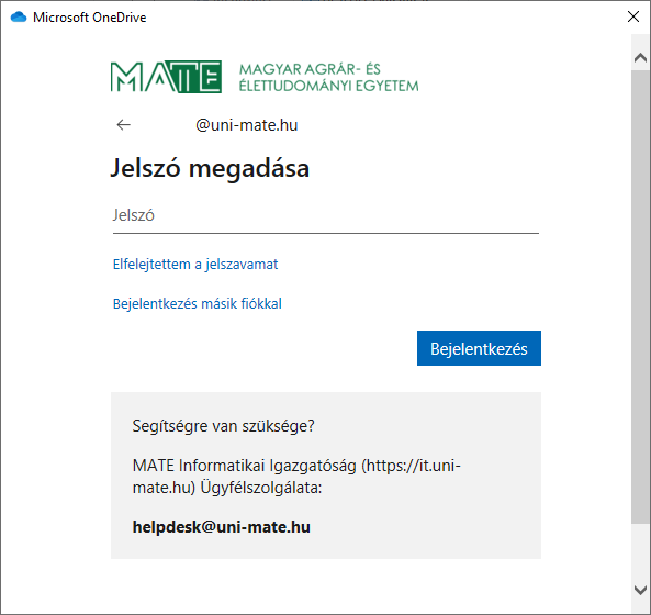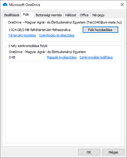 OneDrive fiók hozzáadása - MATE Informatikai Igazgatóság